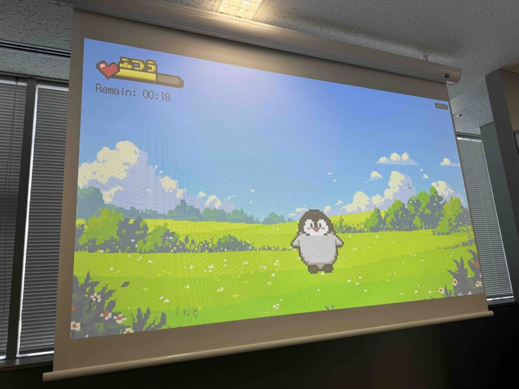 卒研発表会では,青木さんが作成した育成ゲームのデモが披露されました.